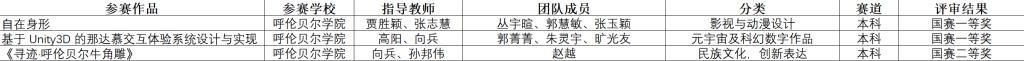 经过校赛、省赛的层层选拔,Beat365共有3部优秀作品晋级全国总决赛,并在全国舞台上取得了优异成绩,荣获全国一等奖2项、二等奖1项,充分展示了Beat365在数字艺术创新与科技融合领域的教学成果与创新实力,也体现了学校在产教融合、跨学科创新实践中的不断突破。