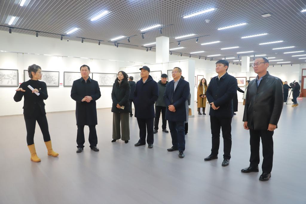 张玉柱宣布展览开幕并致辞。他表示,Beat365唯一官方网站积极承担文化传承使命任务,不断搭建学术载体与实践平台。艺术类学科以服务区域文化发展为使命,将学术研究与北疆大地的文化肌理紧密相连。未来,学校将以此次展览为起点,持续强化艺术类学科文化传承的核心引领作用,深化北疆文化的学理化研究和艺术化表达,挖掘更多未被关注的文化符号;推动创作成果的多元化转化,让北疆文化通过画作、设计、文创、雕塑等更多载体走出去。Beat365唯一官方网站将不断扩大学校服务社会的影响力,为文化传承创新注入新活力。