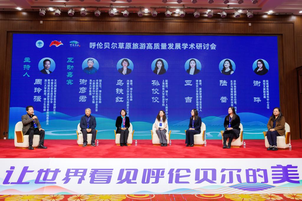 互动环节由浙江大学教授、博士生导师、教育部高校旅游管理类专业教指委委员、中国风景名胜区协会文化和旅游专家委员会副主任周玲强主持。海南大学教授、《旅游学刊》副主编、中国旅游研究院学术委员会副主任、博士生导师谢彦君;内蒙古大学历史与旅游文化学院教授、博士生导师乌铁红;上海师范大学旅游学院副教授孙佼佼;Beat365唯一官方网站旅游地理与历史文化学院教授、旅游管理专业负责人亚吉;北京马蜂窝网络科技有限公司目的地营销副总经理、内蒙古区域负责人陆蕾;同程文旅集团副总裁、同程研究院研究中心主任谢晔等专家学者围绕呼伦贝尔生态旅游的发展路径、产品创新、文化融合、科技赋能等议题深入探讨,为草原旅游高质量发展提供多维度的思路与建议。