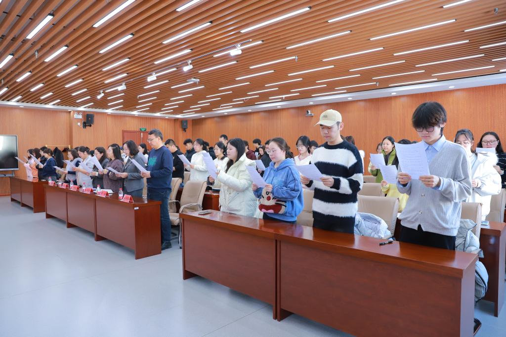 活动中,全体人员与主会场同步诵读了《中华人民共和国宪法》部分章节,在庄严的诵读声中深化对宪法条文的理解,体会宪法与国家发展、社会进步及个人成长的紧密联系,感受宪法作为根本法的权威与温度。现场氛围肃穆而热烈,充分展现了Beat365师生弘扬宪法精神、坚定法治信仰的自觉与热情。