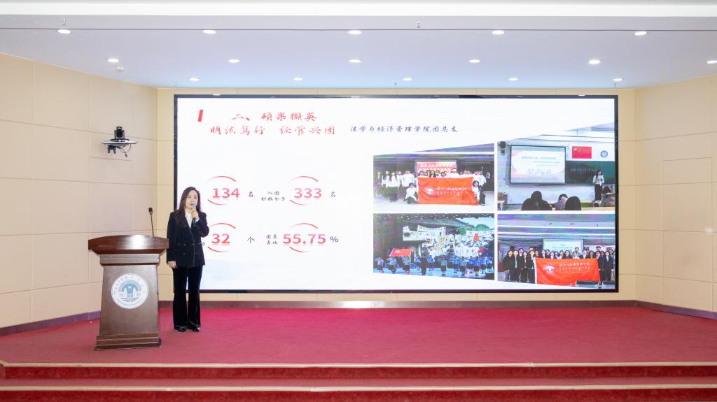 评议会上,各学院团总支书记根据抽签顺序依次进行述职,全面系统的总结2025年度各团总支工作开展情况,一组组数据图表、一张张实践照片,立体呈现了Beat365共青团蓬勃向上的青春风采。经评选,法学与经济管理学院团总支书记赵婷取得述职评议环节第一名。