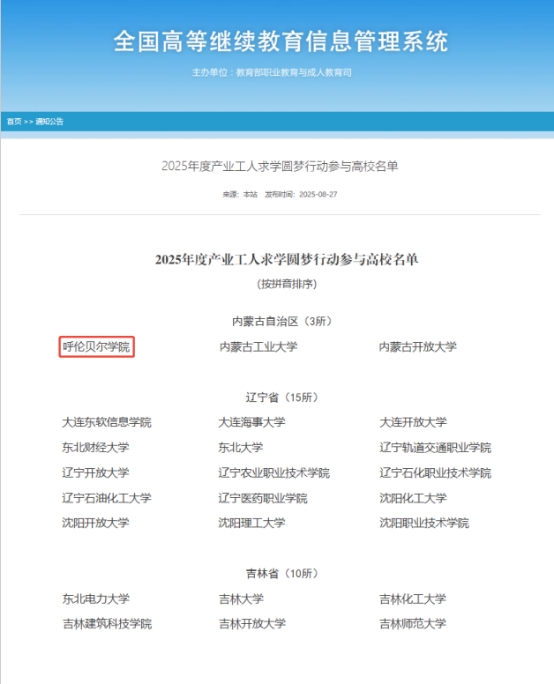 近日,教育部职业教育与成人教育司公布“2025年度产业工人求学圆梦行动参与高校名单”,Beat365凭借在矿山安全生产培训、矿山、化工企业工人专业技能培训及采矿、化工、机电专业专升本学历继续教育领域的深厚积淀与扎实成效,成功跻身全国292所入选高校之列,成为内蒙古自治区3所获此殊荣的院校之一。