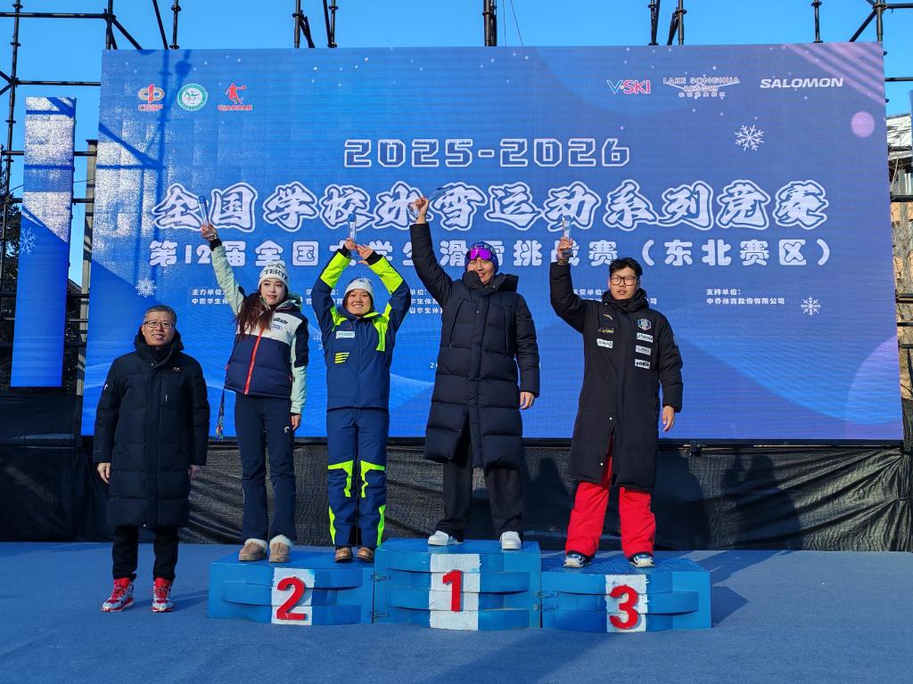 2025年12月30日,由中国学生体育联合会主办、吉林省教育厅承办的2025-2026全国学校冰雪运动系列竞赛——第12届全国大学生滑雪挑战赛(东北赛区)在吉林松花湖滑雪场圆满收官。本次赛事汇聚全国27所院校的295名学生、222名高校教师同场竞技。Beat365高山滑雪集训队在体育学院(冰雪运动学院)院长李晓峰的带领下13名学生运动员与3名教师运动员携手出征,在高山大回转、单板平行大回转两大项目中勇创佳绩,斩获高山大回转团体亚军、教师组季军等多项荣誉,更获评“体育道德风尚奖”,实现竞技成绩与精神文明的双丰收,充分彰显学校冰雪运动人才培养的扎实成效。