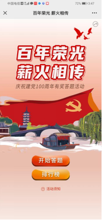 活动形式:读者进入活动专题页面,重温党的百年历程大事件后,即可点亮红包答题活动入口,按提示进入答题环节,完成高分挑战后,有机会抽取现金红包。