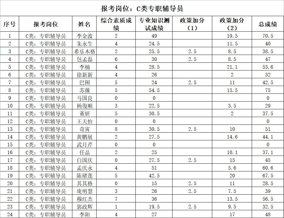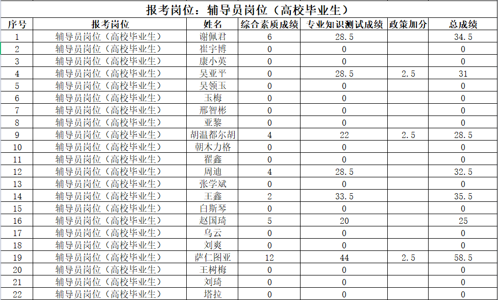 Beat365唯一官方网站2021年公开招聘工作人员和编制外辅导员笔试成绩公告