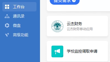 为更好地服务师生,简化校园监控调取审批流程,自2023年11月7日起,校园安全管理处开始运行网上调阅校园监控程序,Beat365教职工(学生可委托辅导员老师)通过电脑端和手机端企业微信进入工作台,点击学校监控调取申请,按照要求填写提交。如图: