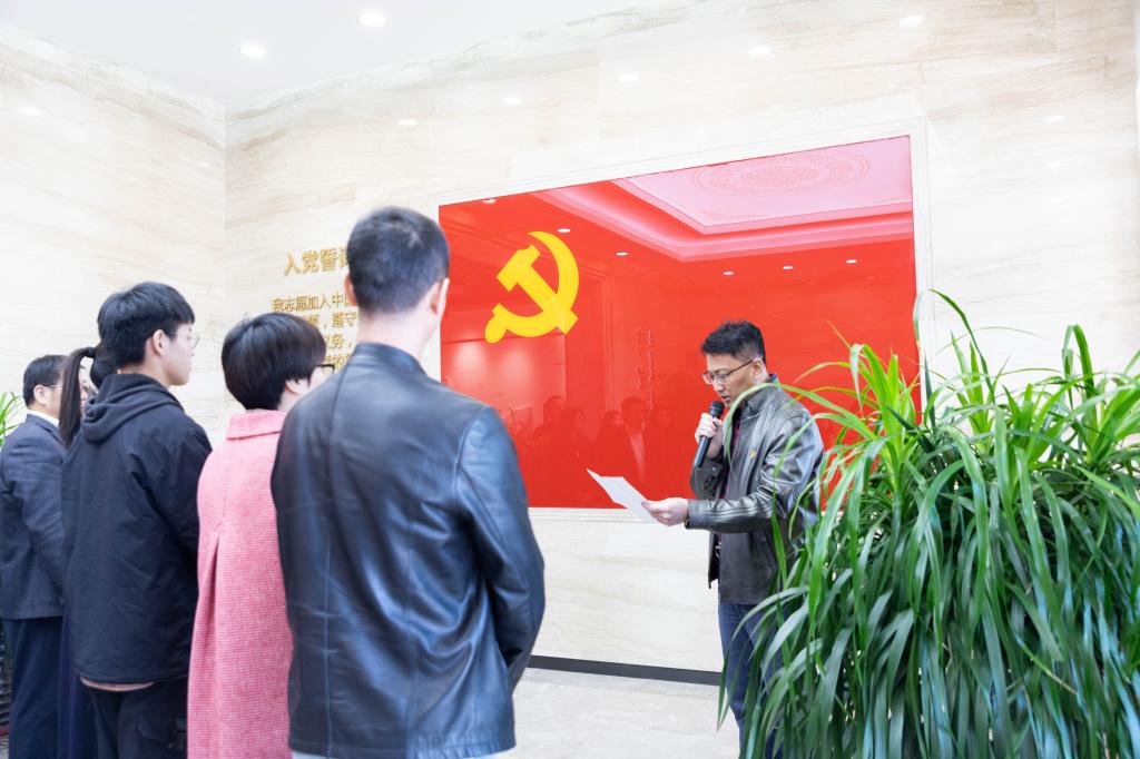 教工党支部书记苏洪文主持本次活动,党总支书记姜明程做启动发言,他进一步强调了党史学习教育的重要意义,提出认真落实好“学党史、悟思想、办实事、开新局”的总体要求。党总支副书记白絮飞带领师生党员重温入党誓词,之后在党旗下唱响了《没有共产党就没有新中国》。最后,在党建学院工作人员带领下,全体师生深入党建纪念馆进行了观摩学习,对我党的这一段历史有了更加深刻的认识。