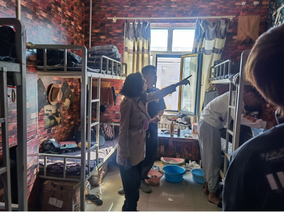 在走访学生宿舍时,老师们详细的询问了寝室卫生、寝室居住中不便和困扰,深切了解了学生诉求。一行老师希望同学们能够树立正确的集体观和价值观,建立寝室良好的生活秩序,并叮嘱同学们一定要珍惜在校美好时光,养成良好行为和生活习惯。对于同学们寝室居住中的困难,学院领导表示会积极组织和协调各管理部门尽快帮助缓解或者解决。同学们表示一定会加强内务和寝室安全卫生,养成文明的行为习惯。