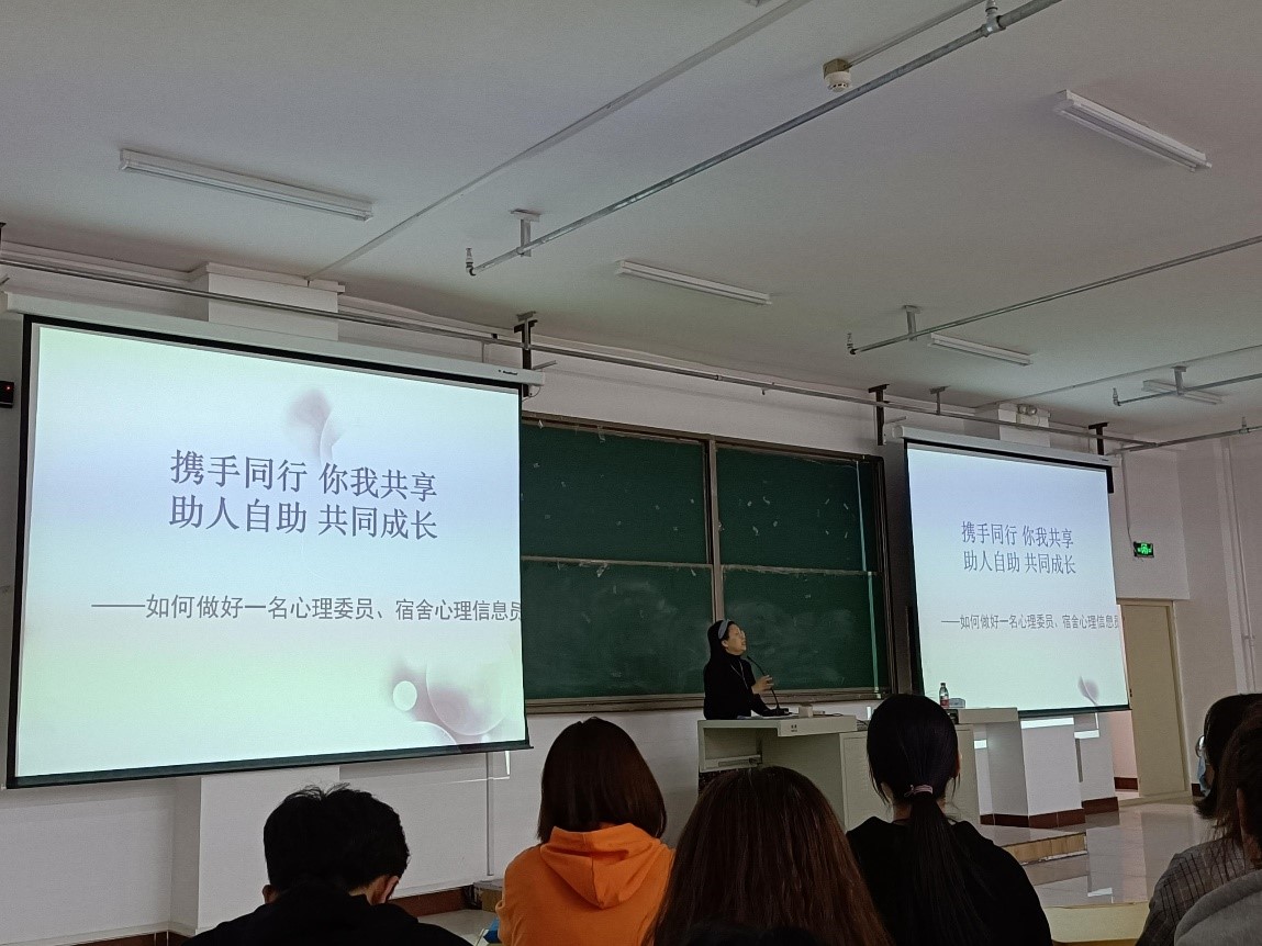 培训从近年来高校出现的一些突发事故引出“我们可以做些什么”的问题。通过与同学们的互动,引导同学们总结出心理委员的角色定位和工作职责。随后,谢春辉老师详细解读了心理委员工作的保密、及时转介、实事求是、中立、安全五项原则,并引用泰戈尔的名言“教育的目的应当是向人传送生命的气息”作为结束语,引导同学们理解生命、热爱生命、关怀并尊重他人生命。