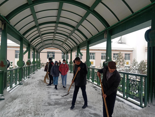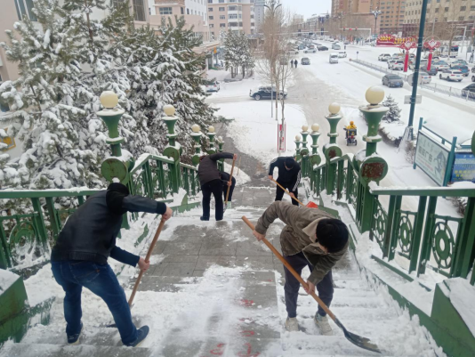 4月16日早晨,一场罕见的大雪令海拉尔的交通出行变得困难起来,特别是上下过街天桥更加不便。为尽快铲除冰雪畅通道路,国际教育学院(外事处)党总支动员党员干部积极参加清雪行动,各部门人员纷纷加入铲雪队伍中来。大家集中铲除外国语学院天桥中段、台阶及桥口处等主要通行道路上的雪。铲冰除雪行动,成效显著,为广大师生及行人开辟出了一条安全之路。