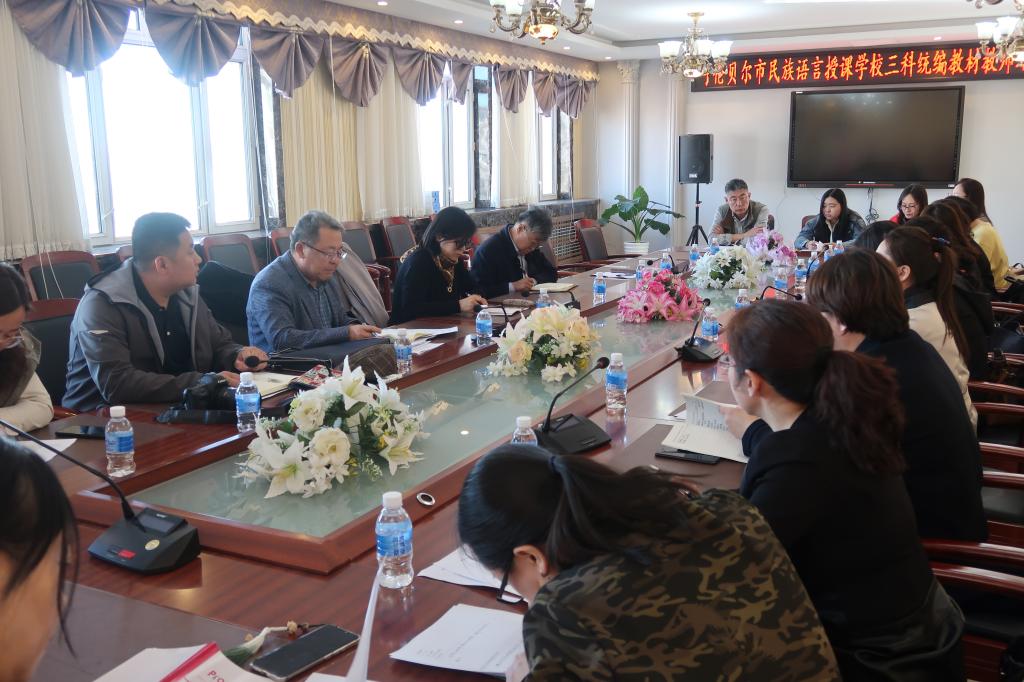在调研期间,调研组认真听取了这五个旗市教育局相关负责人以及学校领导对呼伦贝尔市民族语言授课学校三科统编教材教师培训工作意见和建议以及被培训教师的需求,为今后自治区东部片区民族语言授课学校三科统编教材教师教育教学能力和语言文字应用能力的提升,进一步改进和优化自治区东部片区三科统编教材教师培训方案提供了一定的科学依据。