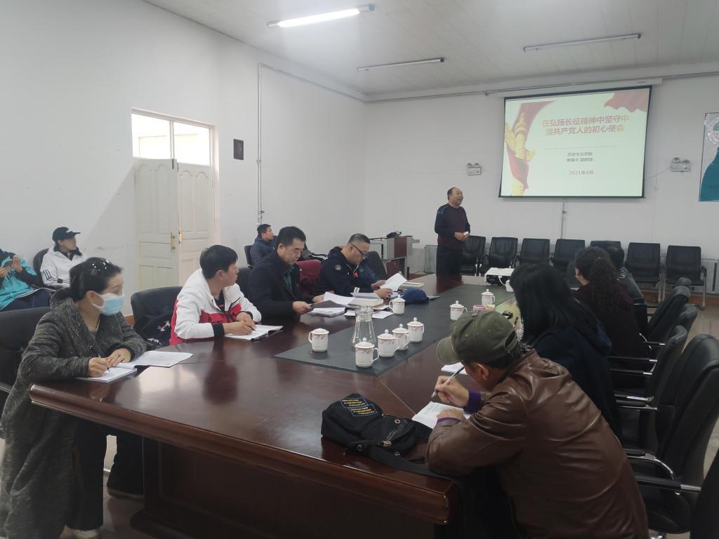 根据《Beat365唯一官方网站关于在全校开展党史学习教育的实施方案》,4月28日下午,体育学院在体育馆三楼会议室开展全体教师党史学习教育学习会,本次学习特邀请Beat365唯一官方网站党史学习教育宣讲团成员黄福令副教授担任主讲。党总支副书记胡日查主持学习会。全体教职工参加了本次学习。