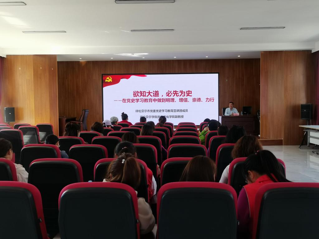 呼伦贝尔市党委党史学习教育宣讲团成员、历史文化学院副院长赵金辉应邀做了《欲知大道,必先为史——在党史学习教育中做到明理、增信、崇德、力行》的主题宣讲。宣讲中,赵金辉副院长从“党史学习教育的重大意义”“党史的若干问题学习解读”“学习党史的几点启示”三个方面,结合参会党员的实际情况,深入浅出地进行了讲解。