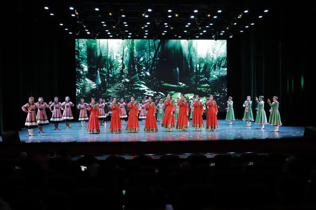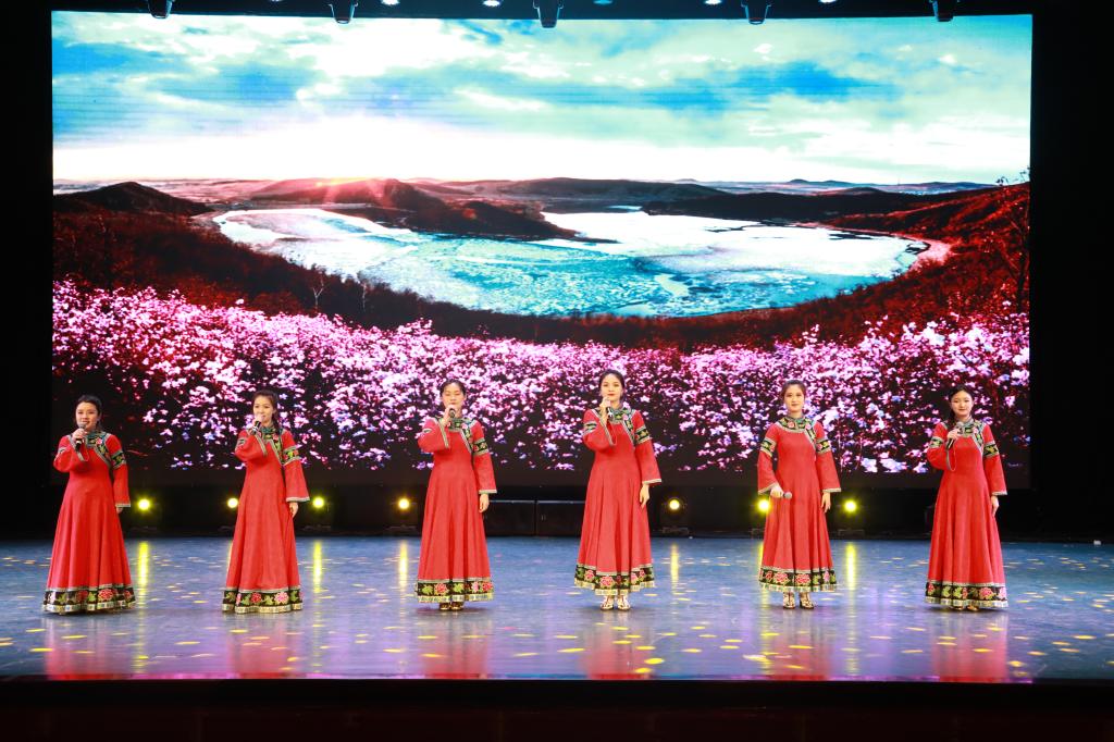 音乐会中,声乐团的汉族学生分别用汉语、达斡尔语、鄂温克语和鄂伦春语演唱了当地的少数民族歌曲,文化特色鲜明,充分展示了音乐与舞蹈学院为地方文化事业服务的教学思想,也为民族音乐的传承做出了贡献。在“课程思政”的理念指引下,教师们将“中华民族一家亲”“你中有我、我中有你”的思想融入了课堂,并付诸实践。