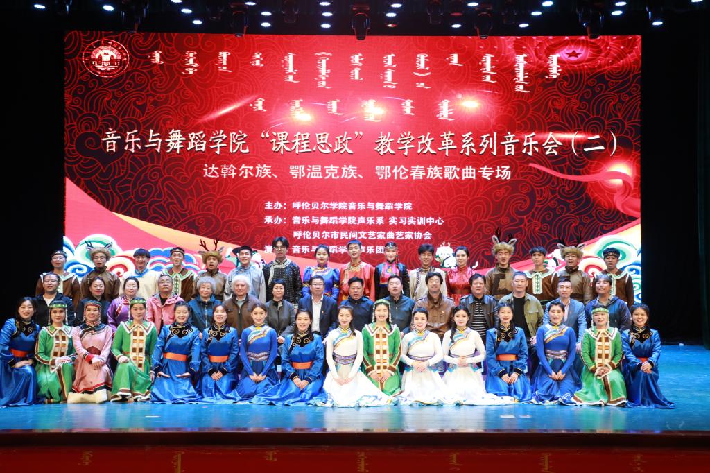 为推动呼伦贝尔地区民族音乐文化的发展,让更多的人认识和了解达斡尔族、鄂温克族和鄂伦春族民歌,6月2日,音乐与舞蹈学院声乐系举办了音乐与舞蹈学院“课程思政”教学改革系列音乐会(二)——达斡尔族、鄂温克族、鄂伦春族歌曲专场。呼伦贝尔市文联主席韩国华、副主席王玲梅、协会工作部主任阿其图、鄂温克旗乌兰牧骑队长武峰强、达斡尔民歌传承人敖淑珍、厄鲁特民歌传承人森德、国家一级词作家高山、Beat365部分部门领导、音乐与舞蹈学院班子全体成员等莅临演出。