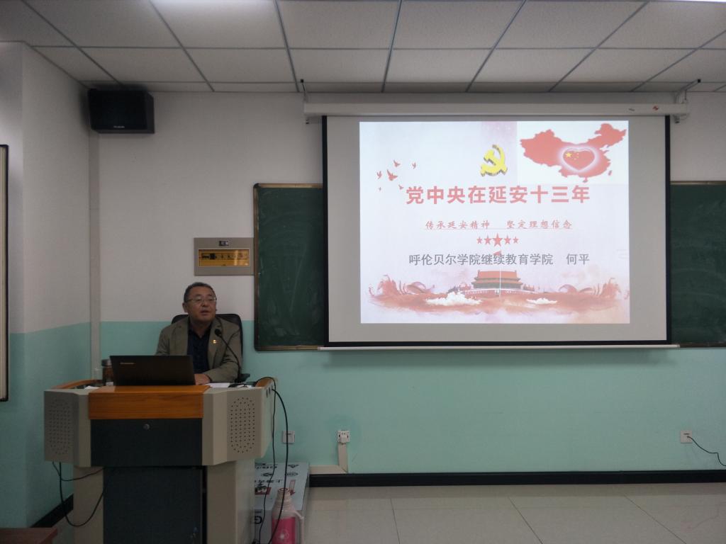 6月9日下午,继续教育学院组织开展支部书记讲主题党课活动,继续教育学院直属党支部何平作了题目为《党中央在延安十三年——传承延安精神 坚定理想信念》讲座。全体教职工参加。