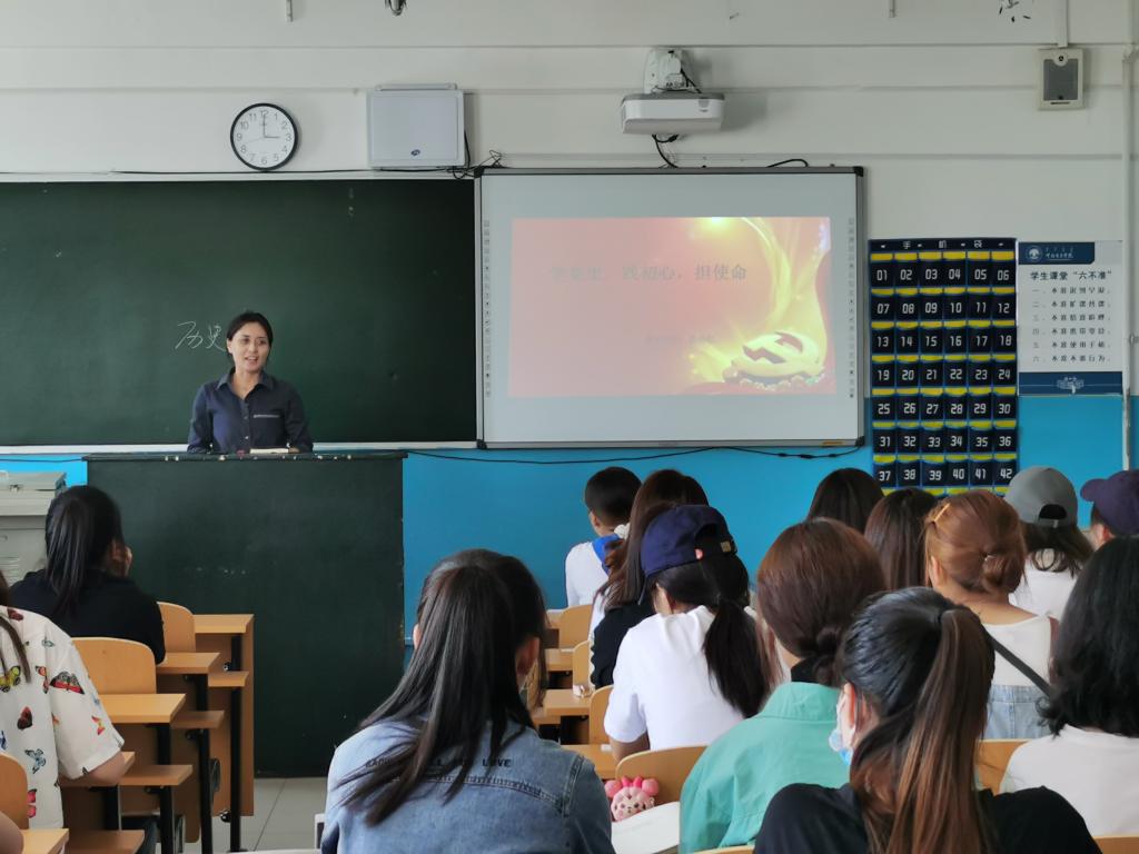 姜明红书记以“学党史,践初心,担使命”为主题,从马克思主义为什么“行”、中国共产党为什么“能”、中国特色社会主义为什么“好”三个问题为切入点,带领同学们重温中国共产党的光辉历史,牢记党的宗旨使命。她强调,作为积极分子要不断提高自己的政治觉悟和专业素养,在党史学习中要做到学史明理、学史增信、学史崇德、学史力行,努力做一名优秀的入党积极分子。