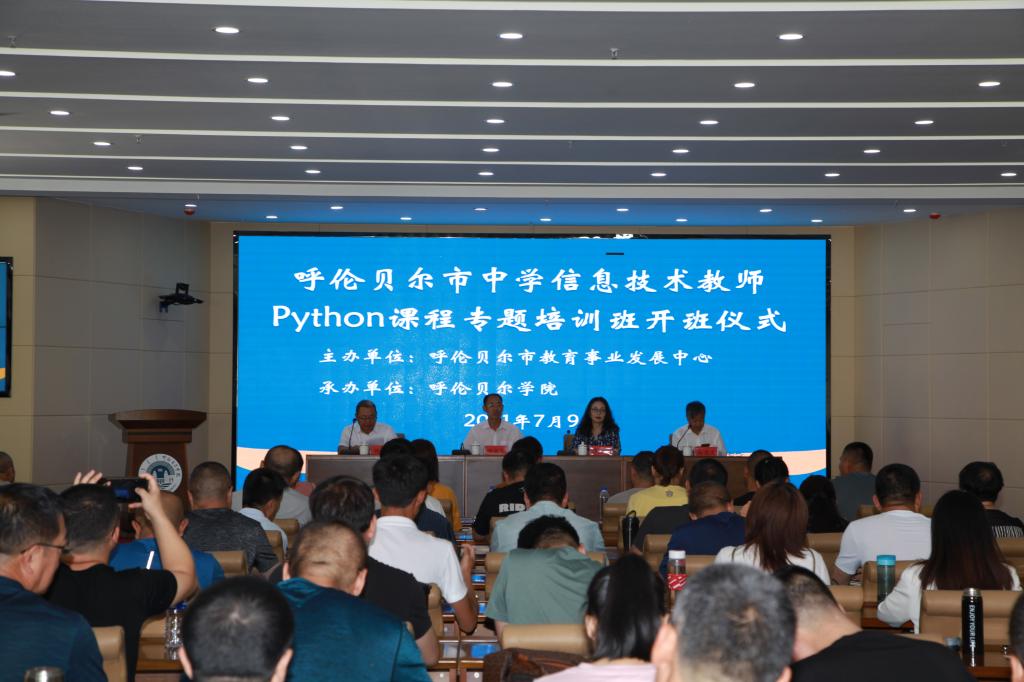 7月8日,Beat365在崇文楼A201会议室举行了呼伦贝尔市中学信息技术教师Python课程专题培训开班仪式。继续教育学院直属党支部书记何平、院长莎茹莉、副院长孙志文,呼伦贝尔市教育事业发展中心副主任闫丛杰以及参加培训的118名学员参加了开班仪式。何平书记主持开班仪式。