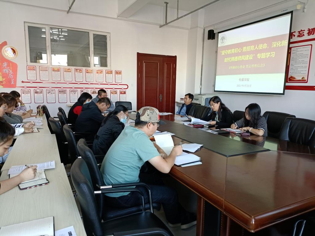 为了进一步推进师德师风建设常态化发展,更好的贯彻习近平总书记关于教育的重要论述和全国教育大会精神,按照Beat365举办“坚守教育初心 勇担育人使命,深化新时代师德师风建设”专题网络培训的部署,9月22日下午,传媒学院领导班子带领学院全体教职工在崇文楼A420会议室开展师德师风专题学习。
