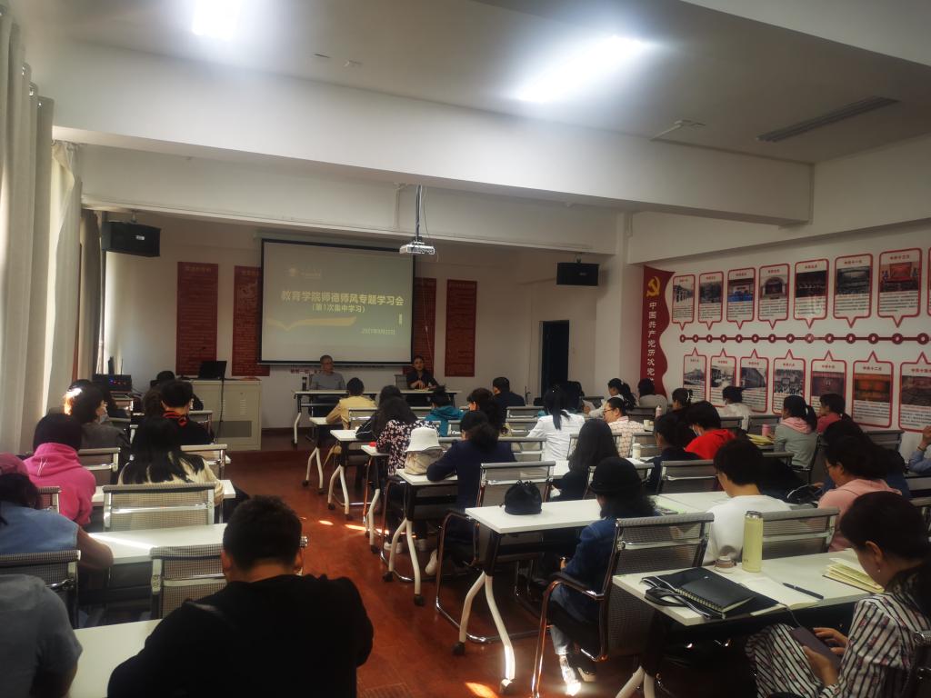 9月22日下午,教育学院在艺术楼501会议室召开师德师风专题学习会议暨师德师风承诺书签订仪式。教育学院全体教职工参加会议。