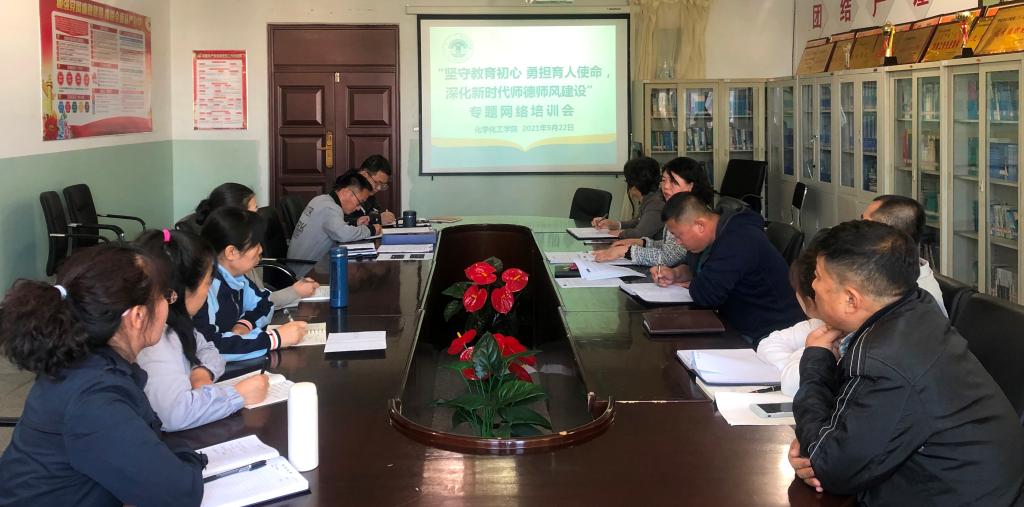9月22日下午,化学化工学院在科技楼422会议室召开“坚守教育初心 勇担育人使命,深化新时代师德师风建设”专题网络培训会。化学化工学院院长白晓艳主持会议,学院全体教师参加。