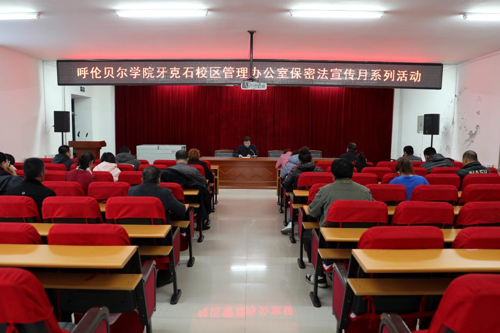 按照学校《关于开展保密法宣传月活动的通知》文件精神,10月15日下午,牙克石校区管理办公室组织全体教职工在实验楼一楼阶梯教室开展“保密法宣传月”系列活动。