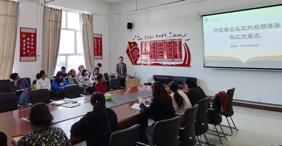 10月13日下午,马克思主义学院在崇文楼B123会议室召开师范专业认证主题学习会。数学与统计学院的吴红艳老师莅临学习会对师范专业认证的前期筹备和工作要点进行指导。马克思主义学院全体教师参加会议,学院副院长吴秀芳主持会议。