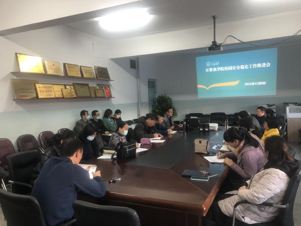 11月8日下午,计算机学院在尚行楼309召开校园安全稳定工作推进会。会议由学院党委书记布仁白乙拉主持。
