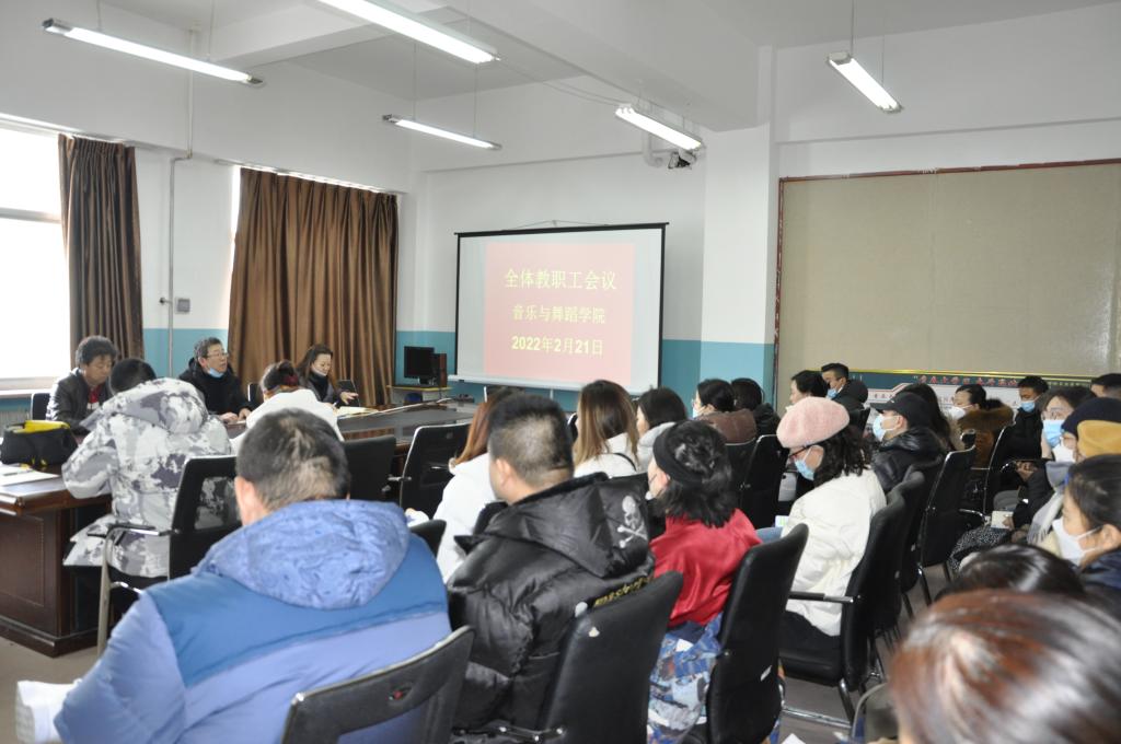 李雅杰书记对疫情防控工作、线上教学工作提出了相关要求,总结回顾了2021年音乐与舞蹈学院工作大事记,并对2022年各项工作进行动员。