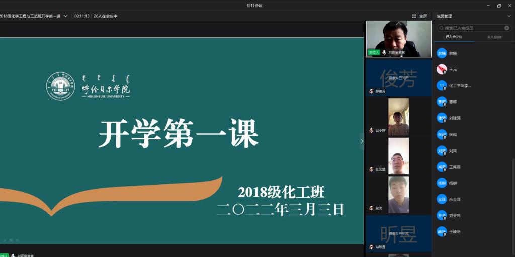 为进一步推进化学化工学院就业工作,贯彻落实自治区和学校有关就业工作的指示精神及疫情防控相关工作要求,3月2日至3月5日,化学化工学院在线上召开2022届毕业生开学第一课暨就业工作推进会,会议由各班班主任主持,2022届全体毕业生参加会议。
