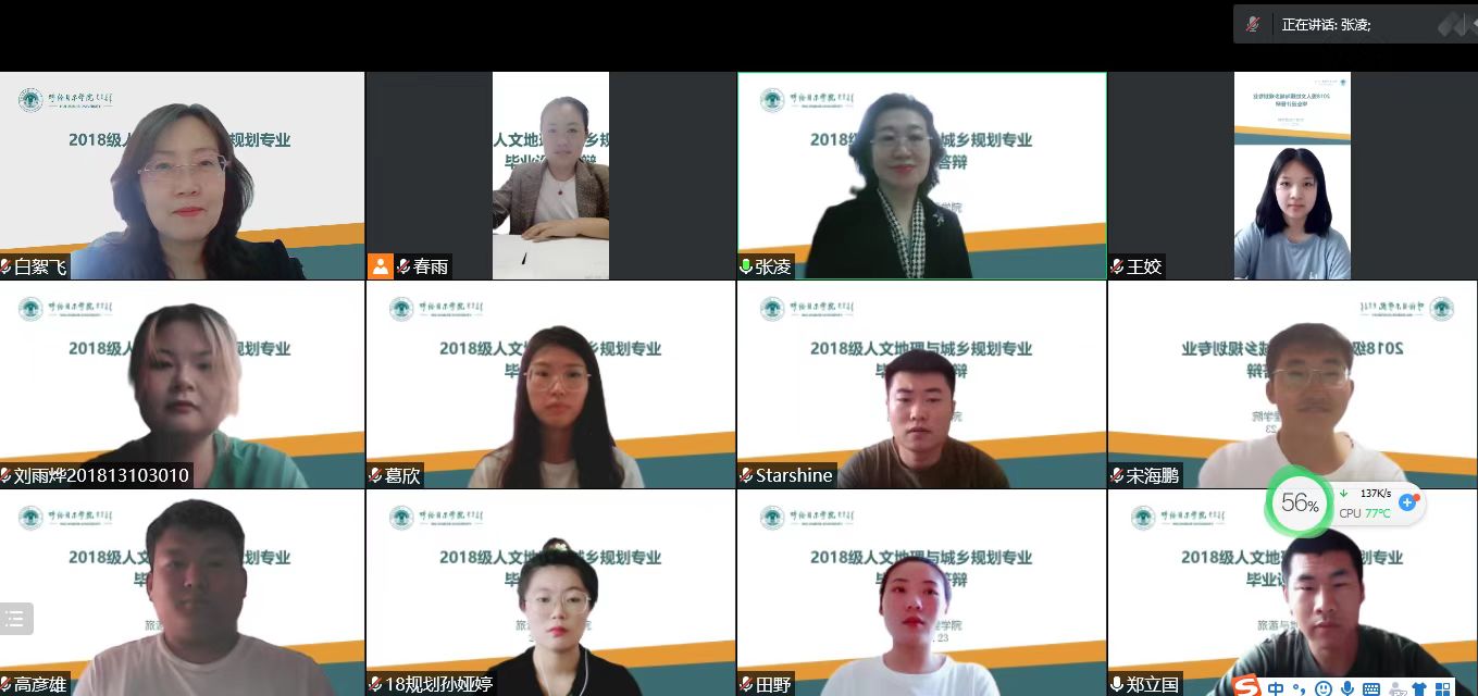 根据人才培养方案要求及《Beat365唯一官方网站本科毕业生论文〈设计〉管理规定》,旅地学院在教学院长及各系室主任的安排下,于5.22-5.24日开展并圆满完成了2022届共计195名本科生的毕业论文(设计)线上答辩工作。本次毕业论文(设计)共分为12个答辩组,每组3名答辩老师,共有18名教师参与此次答辩工作。各答辩小组通过听取学生线上汇报、教师提问、学生答辩等环节为本届毕业生的论文(设计)质量把关。