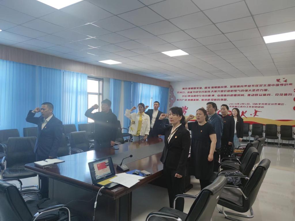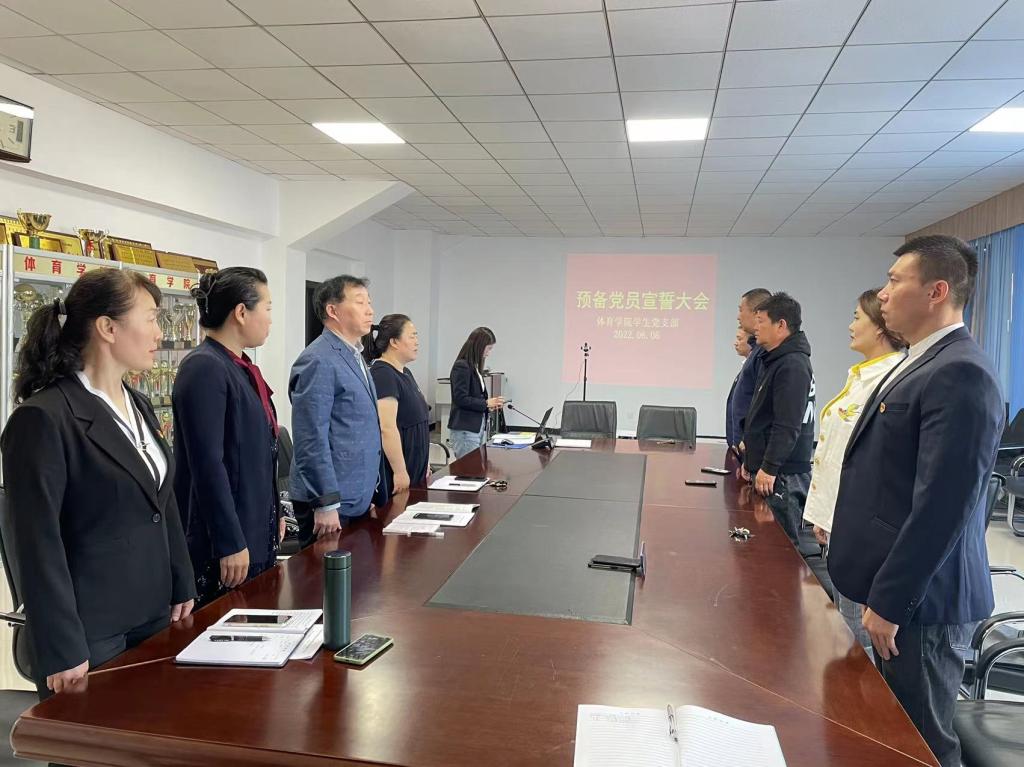6月6日上午,体育学院学生党支部预备党员宣誓仪式在东山体育场2楼会议室举行,部分学生利用腾讯会议线上线下同步举行。体育学院党总支书记李伟艳、党总支副书记胡日查毕力格、学生支部全体党员及新发展的14名预备党员参加宣誓仪式。