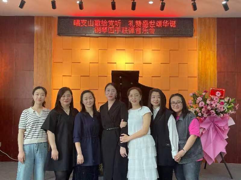 曹杨老师和伊兰老师演奏了古典乐派、浪漫乐派、现代乐派和中国作品等具有代表性的八首四手联弹作品。主持人伊拉娜详细介绍了每首作品的时代背景、音乐内涵。当弹奏中国作品《唱支山歌给党听》和《我的祖国》时,唤起了教师和学生对祖国、对党无限的感恩和热爱之情,增强了民族自豪感。同时,在音乐会现场和直播间的老师和同学们感受到不同音乐作品传递的不同音乐风格和人文情怀。