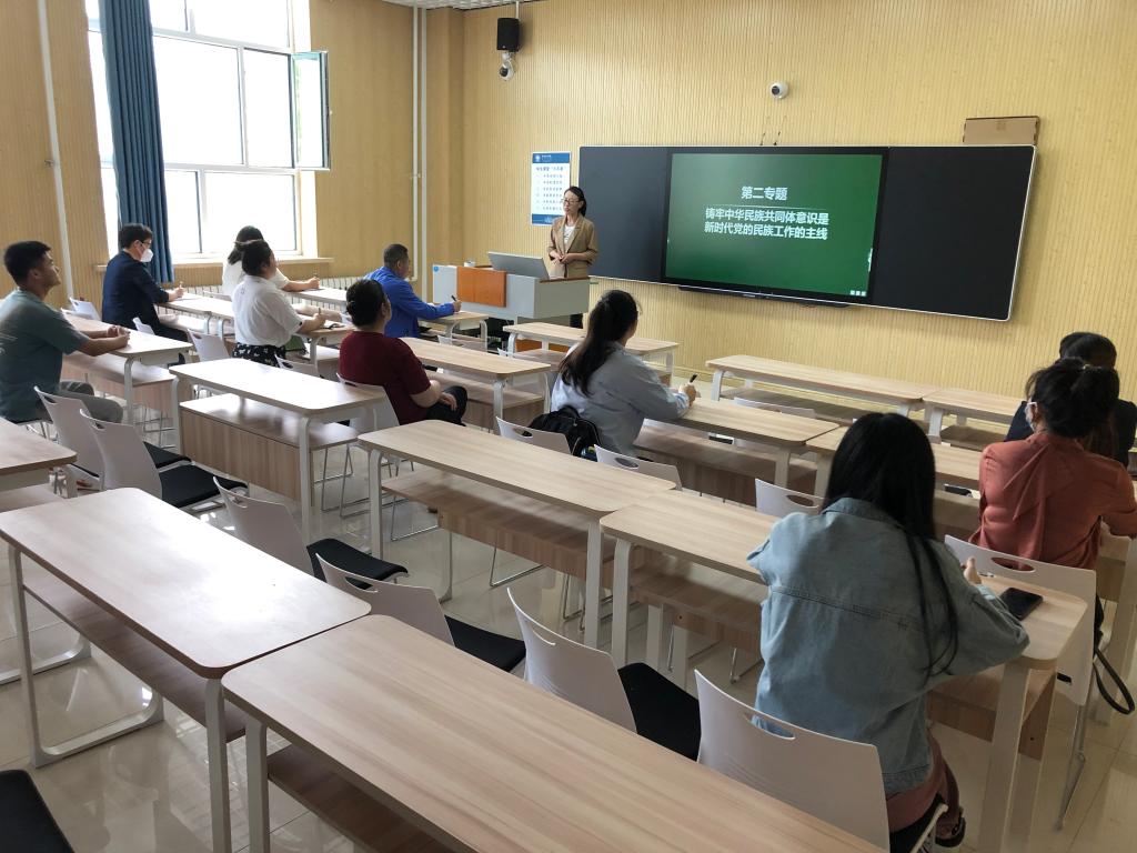 6月15日下午,马克思主义学院铸牢中华民族共同体意识教研室在崇文楼B125智慧教室开展集体备课活动。活动由教研室主任海龙教授主持,课程组全体教师参加。