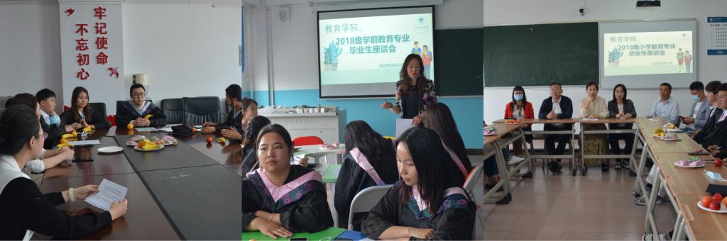 一场座谈会。6月13日,教育学院按小学教育、学前教育、心理学三个专业分别召开了2022届毕业生座谈会,由各专业系主任主持。各专业教师围绕教育学院人才培养等方面进行意见征集和座谈。听取毕业生对教育、管理、服务等方面的意见和建议以及各专业学生就业情况。参会领导和老师给予毕业生诚挚的祝福和殷切的期望,希望同学们关注母校发展,常回家看看。
