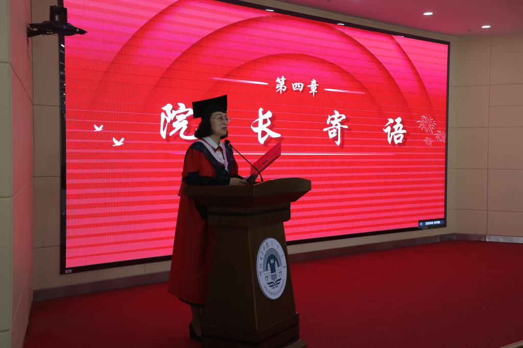 经济管理学院院长李雪峰致毕业寄语。她向即将踏上新征程的2022届全体毕业生表示衷心的祝福,希望同学们不忘母校嘱托,以积极豁达的人生态度在各自岗位实现理想。毕业生代表国际经济与贸易专业姚树峰同学表示,感谢母校的培养和老师们的谆谆教诲。作为经管学子,不论身在何处,始终要以满怀赤诚追求理想,以开拓进取定义青春,在人生的新征程中,争做堪当民族复兴重任的时代新人。
