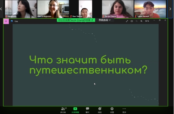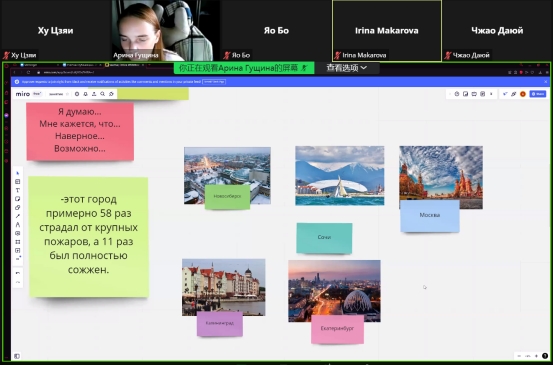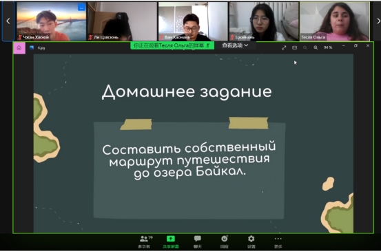 为了更好地进行师生互动,提高学生参与度。本次活动分为两个小组进行,每个小组活动七天,共32学时。活动内容包括聆听俄罗斯教师的语音、语法课程;中俄学生之间交友互动、游戏;诗歌朗诵、介绍家乡景点等形式活泼多样。活动最后,俄方教师为积极参加活动的同学颁发了结业证书。