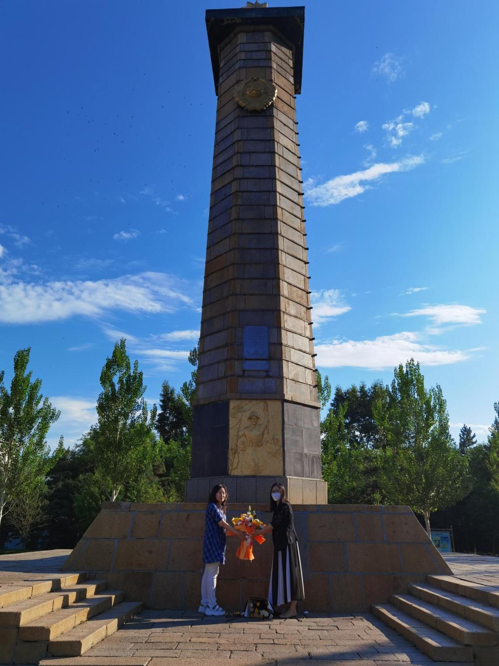 接下来苏洪文做了题为“继承先烈遗志,共创和谐中国”的主题讲解。最后全体党员在苏联红军烈士纪念碑前合影留念,并由白絮飞和亚吉老师代表参加活动的党员向革命烈士敬献了鲜花。