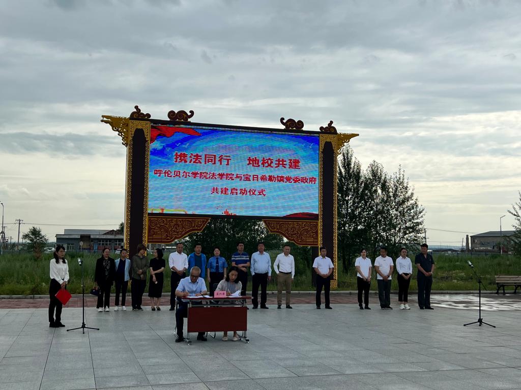 法学院党总支副书记白杰与栓柱书记共同签署了Beat365唯一官方网站法学院党总支与中共宝日希勒镇委员会《融合党建协议书》;马斌院长与婧婧镇长共同签署了宝日希勒人民政府与Beat365唯一官方网站法学院《共建协议书》,并共同完成揭牌仪式。最后,双方为社区居民进行了细致详细地普法宣传,针对百姓提出的问题进行答疑解惑。
