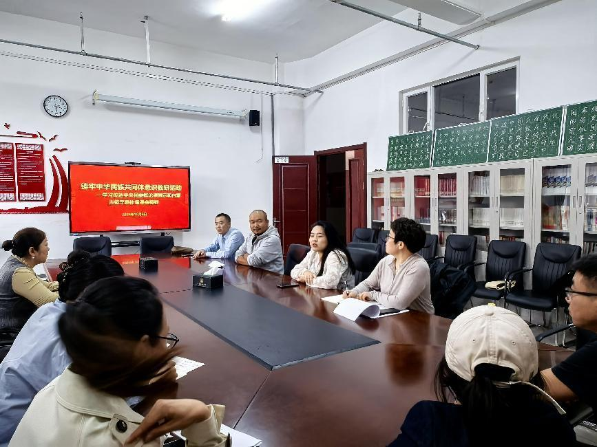为深入学习贯彻党的二十届三中全会精神,进一步推动铸牢中华民族共同体意识走深走实,10月9日下午,马克思主义学院铸牢中华民族共同体意识教研室开展教研活动,会议由教研室主任海龙主持,教研室全体任课教师参加。