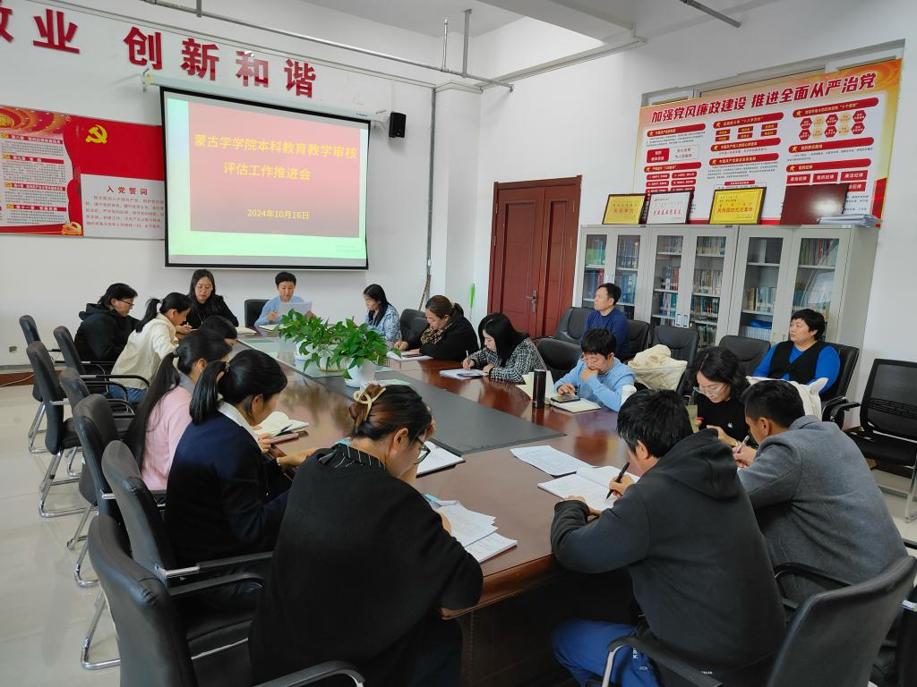 为扎实做好学校新一轮本科教育教学审核评估工作,10月16日下午,蒙古学学院在崇文楼B221室召开本科教育教学审核评估推进会。学院审核评估工作领导小组全体成员以及全体教职工参加,会议由学院院长白秀峰主持。