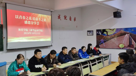 为进一步加强学院学风建设,充分发挥榜样示范和引领作用,激发学生的学习热情,10月21日,体育学院(冰雪运动学院)在山下体育馆二楼多媒体教室开展了“以青春之花 结奋斗之果”感恩教育主题分享会。学生工作处(党委学生工作部、武装部)副处长白松林,体育学院(冰雪运动学院)党总支副书记凌占一,团学办老师,获奖学金、助学金的学院学子们参加了会议,会议由团学办副主任张娜娜主持。