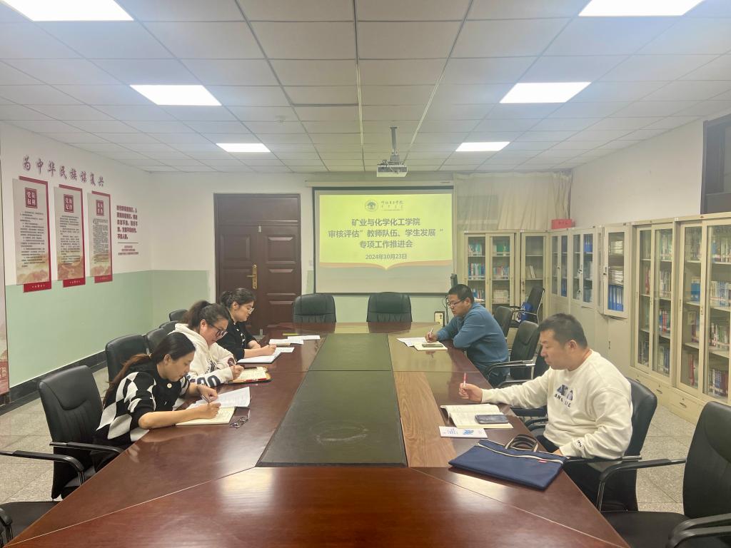 10月23日,矿业与化学化工学院在科技楼422会议室召开了审核评估“教师队伍、学生发展”专项工作推进会。此次会议旨在确保审核评估工作有序、高效推进,进一步提升学院的教育教学质量和人才培养水平。教师队伍及学生发展两个组全体人员参加了会议。
