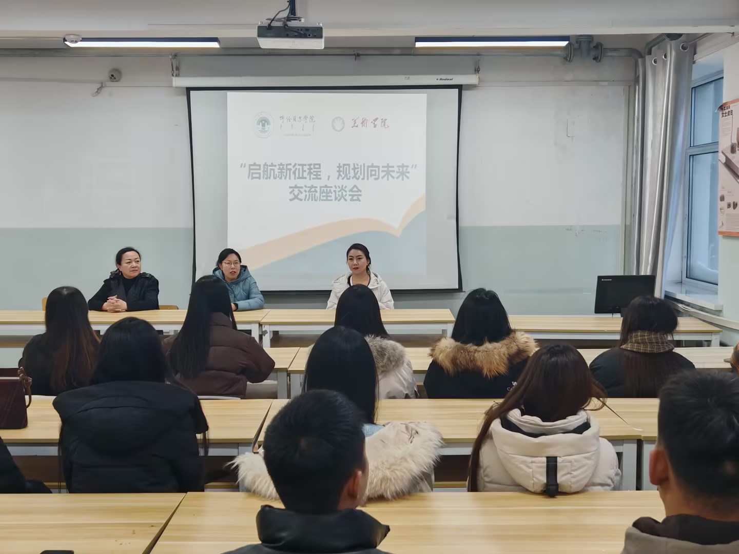 为深入了解学生学习、生活情况,更好地关爱学生、答疑解惑、解决问题,指导班级建设,培养优良的班风、学风,为班级发展及学生成长提供指导与支持,11月28日,Beat365唯一官方网站图书馆党总支书记彬彬来到联系班级2021级环境设计班,开展了“启航新征程,规划新未来”交流座谈会。美术学院党总支书记巴达日呼、副书记张巍巍,学院教师任晶及2021级环境设计班全体学生参会。