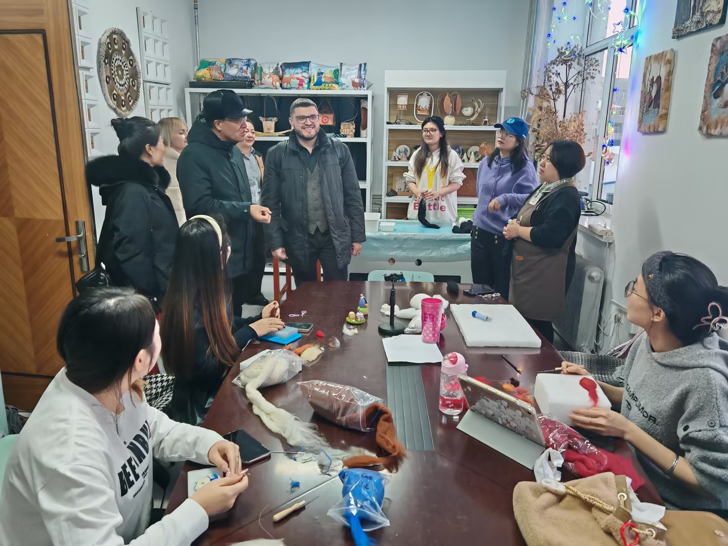 随后,代表团一行参观了美术学院学生画室、民族文化创意产品工作室、非遗文创产品陈列室、教室和画室等,并与老师及学生进行了亲切交流。