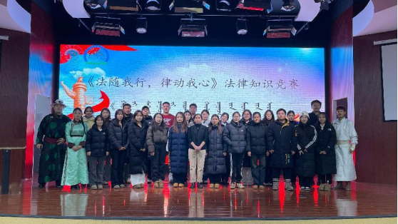 为了进一步增强学生的法律意识,普及法律知识,营造学法、懂法、守法、用法的良好氛围,蒙古学学院于12月6日晚,在崇文楼B小剧场举办了“法随我行,律动我心”法律知识竞赛。32名选手报名参赛,学院党总支副书记孔春艳、团学办老师及100余名学生观看比赛。