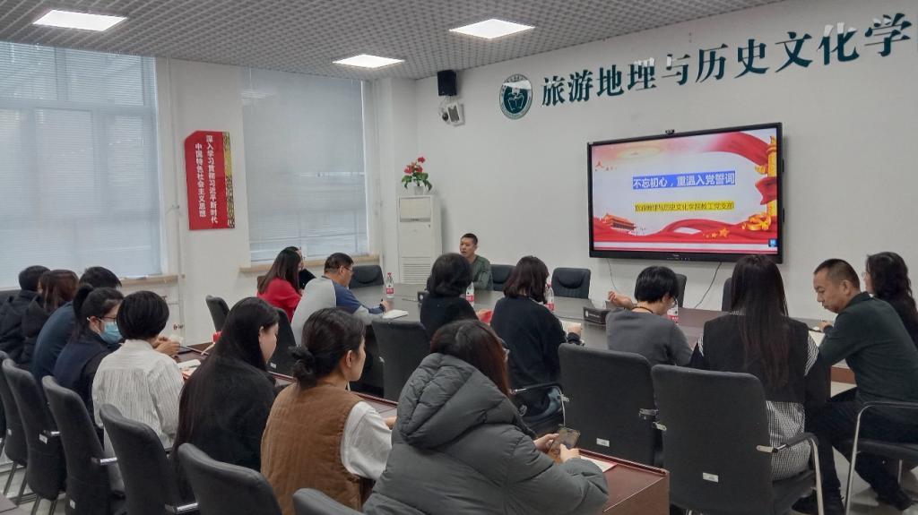 12月18日,旅游管理与历史文化学院教工党支部在崇文楼B321会议室开展“不忘初心,重温入党誓词”主题党日。活动由教工支部书记苏洪文主持,全体教职工党员参加。