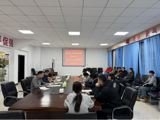 为进一步学习习近平文化思想的丰富内涵和精神实质,切实提高老师的政治站位和思想认识,12月25日下午,体育学院(冰雪运动学院)党总支在东山田径场二楼会议室开展《习近平文化思想学习纲要》专题学习会。会议由学院党总支书记胡日查毕力格主持,学院领导班子成员、全体环节干部、教师党员参加了会议。