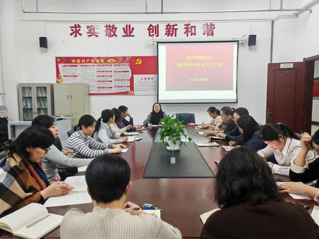 12月27日下午,蒙古学学院在崇文楼B221会议室召开理论学习中心组(扩大)学习会,组织学习《习近平文化思想学习纲要》(以下简称《纲要》)和全区教育工作会议精神。学习会由学院党总支书记格根塔娜主持,学院全体教职工参加。