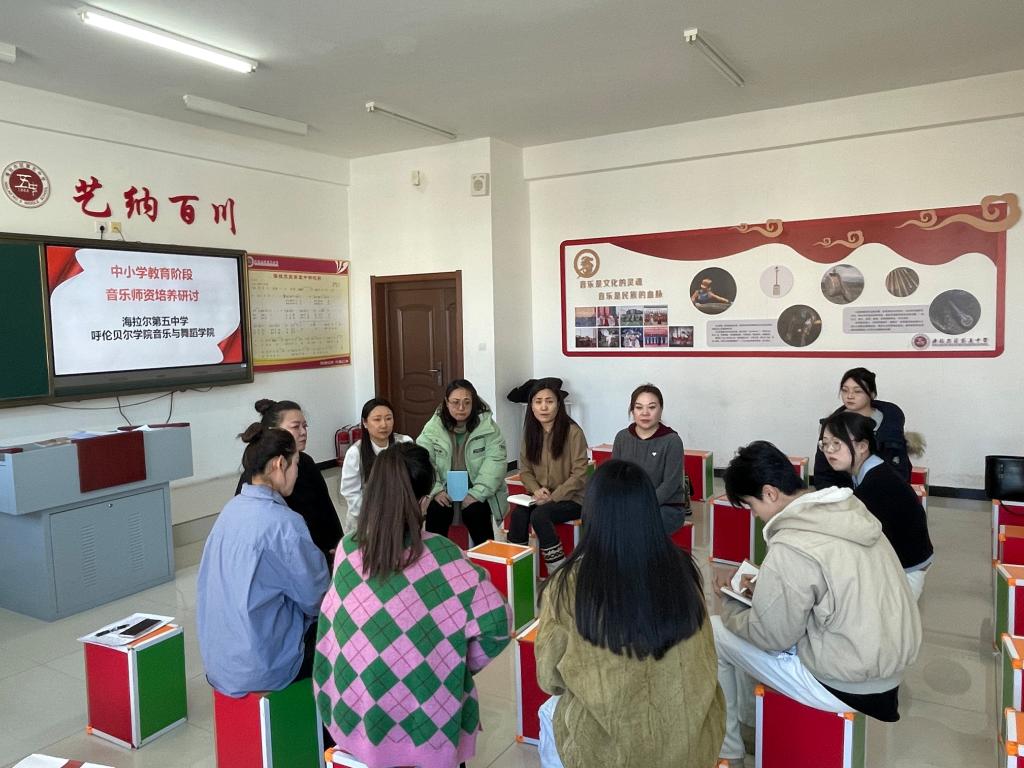 此次走访,灵芝一行参加了海拉尔区第五中学音乐组集体备课教研活动,对初中阶段音乐教材更换后课程设计、课程思政内容的融入、美育育人教学方法的创新等进行研讨。并与学院往届毕业生、海拉尔区第五中学教师王晓飞和邓丽丽围绕从教过程中遇到的难点、短板,对音乐学专业人才培养方案修订的建议等内容进行了深度交流。